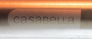 Der Herstellername findet sich in Ätzoptik auf dem Gerät (kleines Bild).