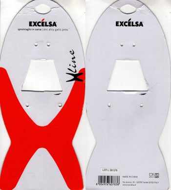 Gebrauch : Der Gebrauchstest verlief enttäuschend: Wegen der eher großen Siebfläche und den viel zu kurzen Griffen (Hebelarm!) kann nicht genug Druck aufgebaut werden um eine oder gar mehrere Knoblauchzehen durch das Sieb zu befördern. Die Zehen werden im Sieb plattgedrückt und können von dort, auch mittels des umklappbaren Noppenfeldes auf der Rückseite der Stempels, vom Siebboden gelöst, etwa mit einem Messerchen aus dem Korb gestochert und anderweitig verwendungsgerecht weiter verarbeitet werden. Die Presse muss als nicht gebrauchsfähig bezeichnet werden!