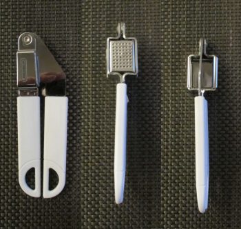 Design und Funktionalität entsprechen vielen vergleichbaren Modellen dieses Quasi-Standards bei Knoblauchpressen.