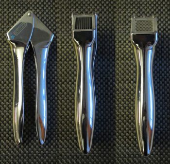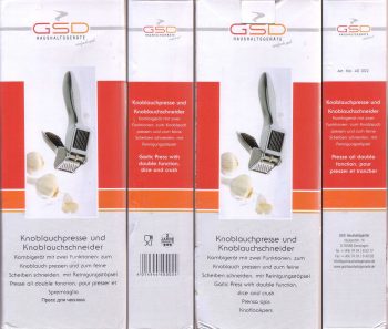 Diese Knoblauchpresse wurde auch von KÜCHENPROFI und wird noch von BUTLERS, ArtNr. 10209161 angeboten (beide nicht in der Sammlung). Auch ein Kunststoffmodell dieser Presse findet sich unter HOMIEZ 20200211a in dieser Sammlung.