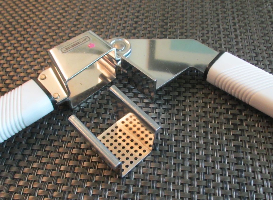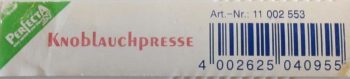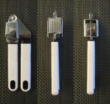 Design und Funktionalität entsprechen vielen vergleichbaren Modellen dieses Quasi-Standards bei Knoblauchpressen, einschließlich der Aufhängung(en) an den Griffenden.
