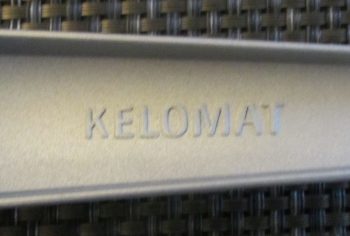 Auf der Aussenseite einer der Schenkel ist das Wort KELOMAT in rotem Siebdruck angebracht. Auf der Innenseite des anderen Schenkels ist KELOMAT erhaben geprägt (kleine Bilder).