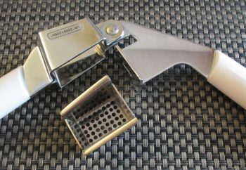 Design und Funktionalität entsprechen vielen vergleichbaren Modellen dieses Quasi-Standards bei Knoblauchpressen.