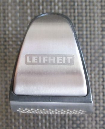 Allerdings kann bei ordnungsgemäßer Anwendung mit der angesprochenen Kraft bei gleichzeitigem Hin- und Herwiegen des Gerätes praktisch die gesamte Zehe ohne jeden Rückstand zerkleinert werden. Das ist einzigartig bei allen im Rahmen dieser Sammlung getesteten Geräten. Danach muss das Pressgut, vorteilhafterweise mit einem kleinen Messer, von der Innenseite des Siebes abgekratzt werden.