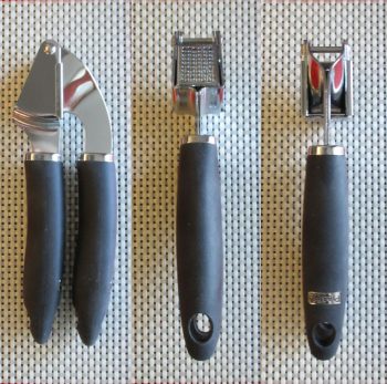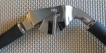 Die Presse trägt auf beiden Griffen je eine metallene Kartusche …