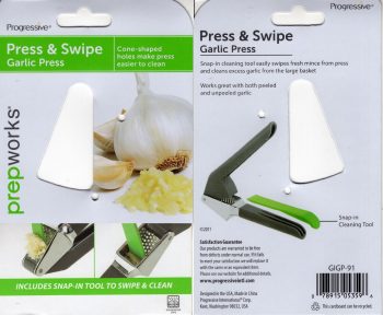 Gebrauch : Auch wegen der eher größeren Löcher des Siebs hält sich der Kraftaufwand beim Pressen in Grenzen. Es wird die gesamte Zehe durch das Sieb gepresst (nichts tritt am Stempel vorbei nach oben). Jener Zelluloseanteil der notwendigerweise in der Presse zurückbleiben muss hindert nicht beim Pressen der nächsten Zehen.