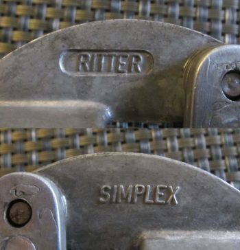 Die Presse trägt zwei Prägungen auf dem Verbindungssteg, und zwar auf einer Seite RITTER (in einer Kartusche) und auf der anderen Seite SIMPLEX (kleines Bild).