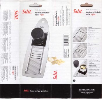 Mittels eines Schlittens mit Restehalters, der beidseitig eingesetzt werden kann, werden Knoblauchzehen entweder in Scheiben geschnitten oder gerieben/geraspelt.