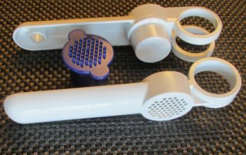 Die Verwendung der auf der Achse angebrachten Noppen zur Reinigung des Siebes ist eher mühselig, weil die richtige Stellung um die Noppen in die Sieblöcher zu führen erst gefunden werden muss.
