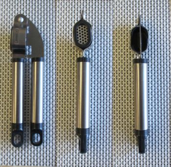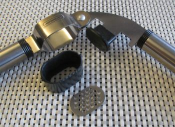 Eine Besonderheit dieser Presse ist, dass nicht nur der Siebkorb, sondern auch das Sieb selbst entnehmbar ist: Letzteres ist in den Korb lose eingelegt.