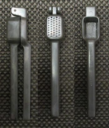 Gebrauch : Der Korb ist zu klein geraten, weswegen schon Knoblauchzehen mittlerer Größe vor der Verarbeitung zerteilt werden müssen. Der Kraftaufwand beim Pressen ist durchschnittlich, hier macht sich die geringe Korbgröße positiv bemerkbar.