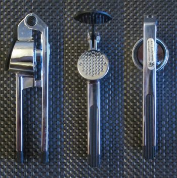 Gebrauch : Die Presse verfügt über einen überdurchschnittlich großen Siebkorb, aber kurze Griffe. Daher ist das Pressen vor allem von älteren großen Zehen mühsam. Es empfiehlt sich daher solche Zehen vor der Verarbeitung zu zerteilen.