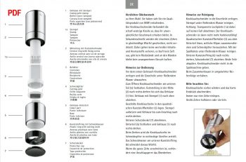 Reinigung : Zur Reinigung muss das Gerät zerlegt werden, was schon recht aufwendig ist. Ein erstes Abspülen unter fließendem, womöglich warmem Wasser ist auch hier zu empfehlen.