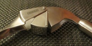 Dem guten Ruf des Hersteller angemessen macht diese Knoblauchpresse einen recht gediegenen Eindruck. Über die Vorderachse, die die beiden Handgriffe verbindet, ist auch das Sieb zur leichteren Entnahme des Pressgutes und wohl auch der Reinigung herausklappbar.